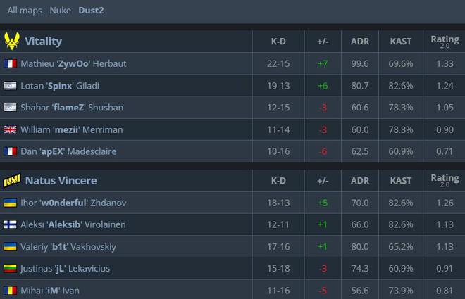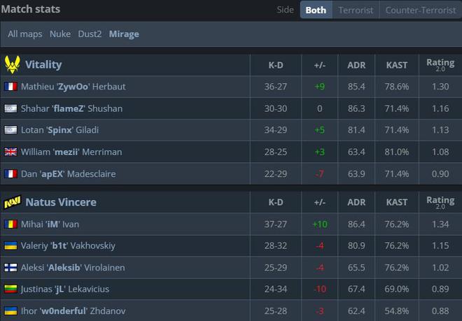 ZywOo斩获36个击杀并在关键局与加时体现出极高的对局影响力;信息的神iM狂砍37个击杀也没能弥补w0nderful一次又一次的空枪,赛事MVP的有力竞争者jL持续哑火。