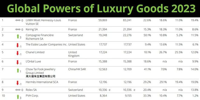 2023年度全球100大奢侈品公司排行榜上榜11家中国公司中